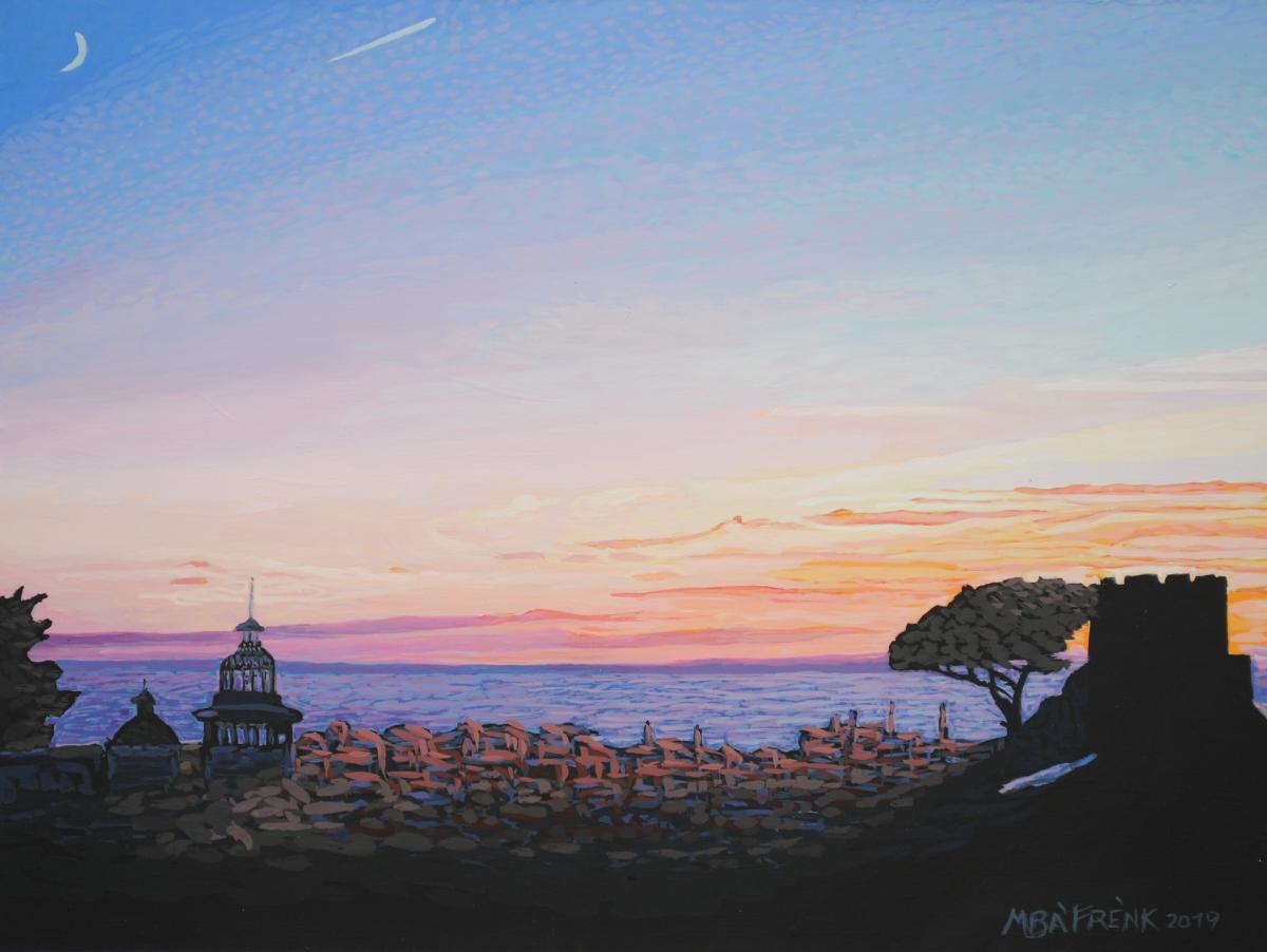La fase di passaggio tra la luce ed il buio della sera sul paesaggio chiavarese