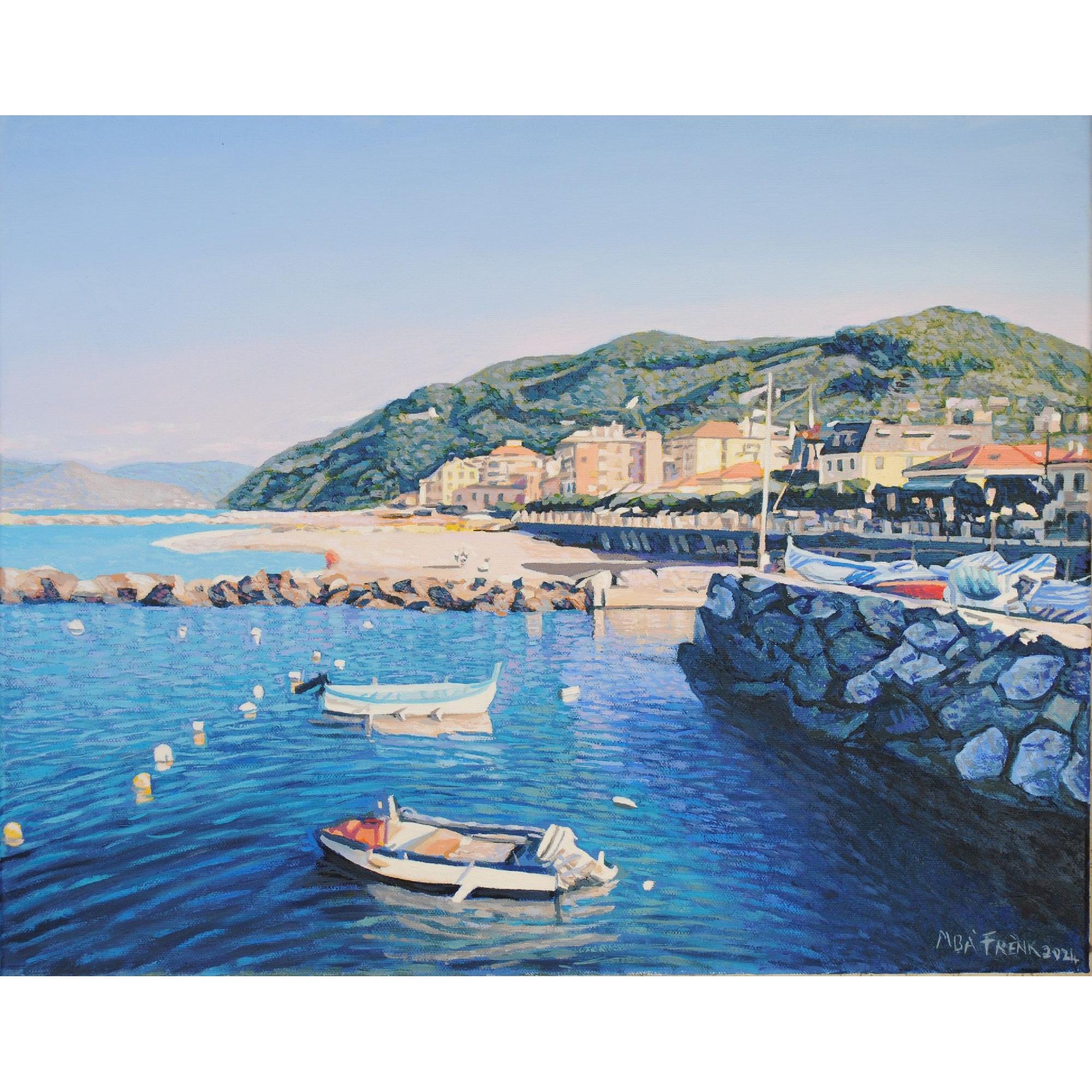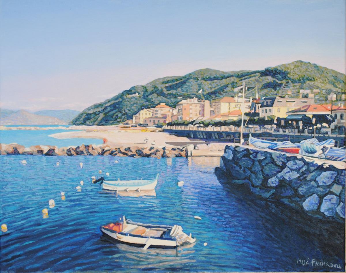 L'opera rappresenta la marina di Chiavari in una bella giornata di sole, con i suoi tipici colori di un mare azzurro.